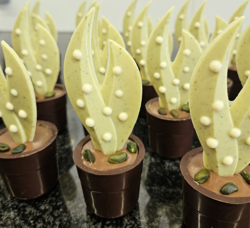 Notre Brin de Pistache réinvente le muguet traditionnel dans une version chocolatée d’une grande finesse.